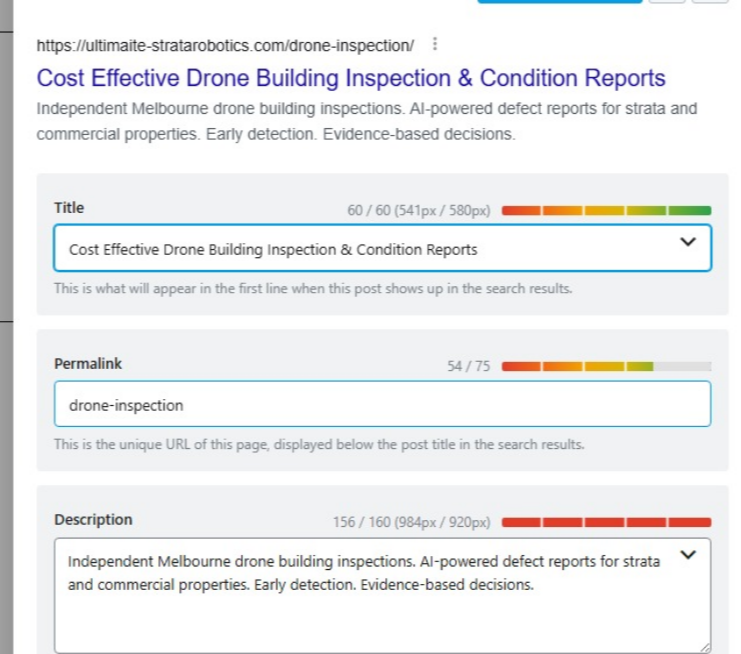 After confirming the direction, I implemented the updates directly within the CMS by configuring the title, permalink, and meta description, helping improve search visibility and overall content structure.